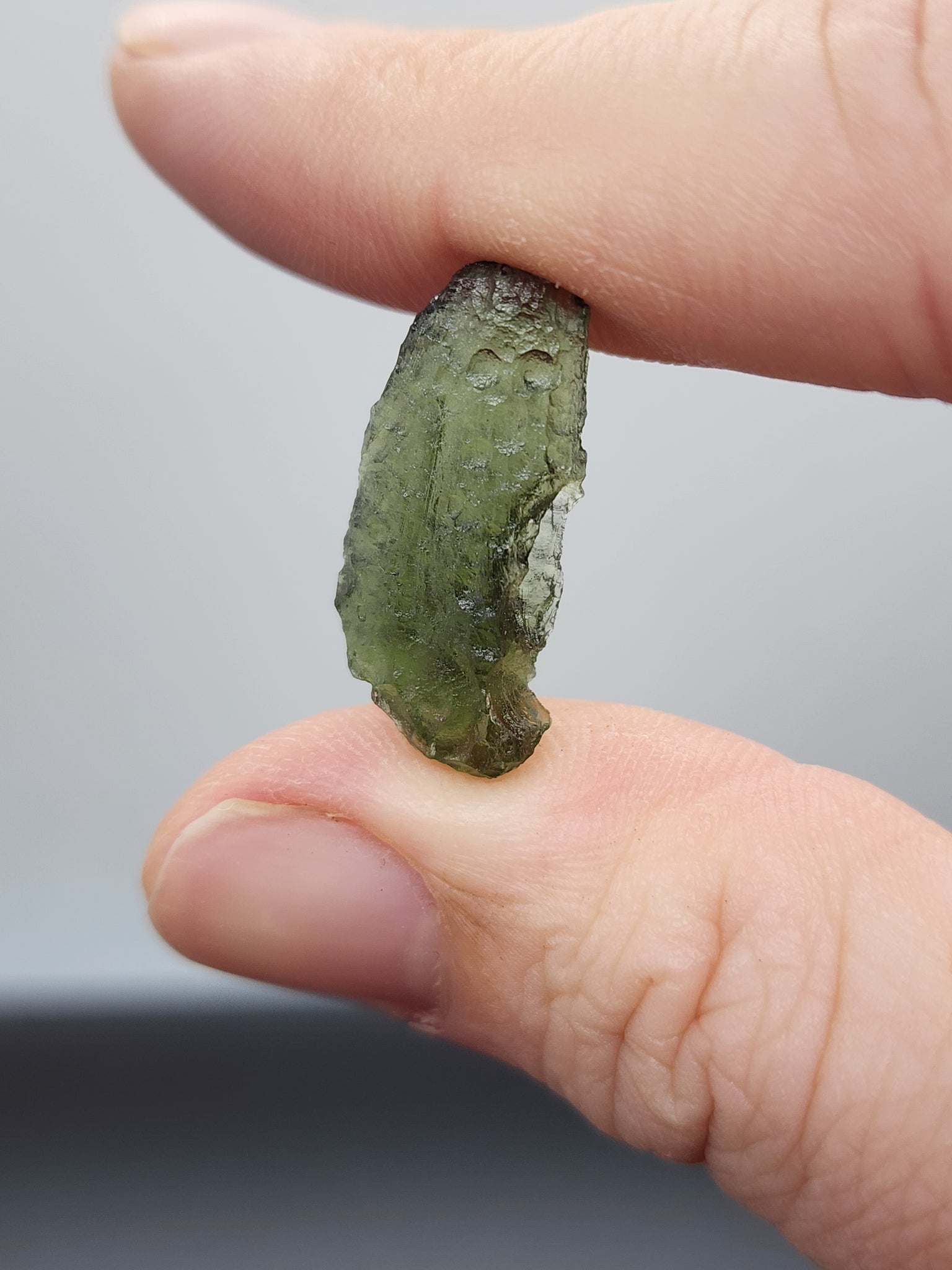 Moldavite is a rare and captivating gemstone, formed approximately 15 million years ago when a massive meteorite struck what is now southern Germany. The intense heat and pressure from this impact melted local rock and ejected molten debris into the atmosphere, which then solidified and rained back down to Earth. This striking forest-green to olive-green natural glass is primarily found in the Czech Republic, specifically within the regions of Bohemia and Moravia. In Bohemia, the most famous and historically significant deposits are located near the Vltava River (Moldau), from which the stone derives its name, particularly in the area around Besednice and the České Budějovice basin. Further deposits extend into Moravia, near towns such as Třebíč and Slavětice, where the stones often exhibit a slightly different texture and appearance. These Czech localities remain the most renowned source of this intriguing tektite, prized both for its otherworldly origin and its distinctive, deeply sculpted surface.