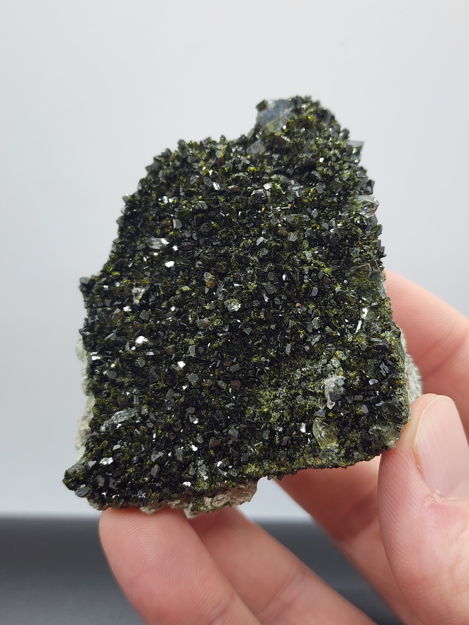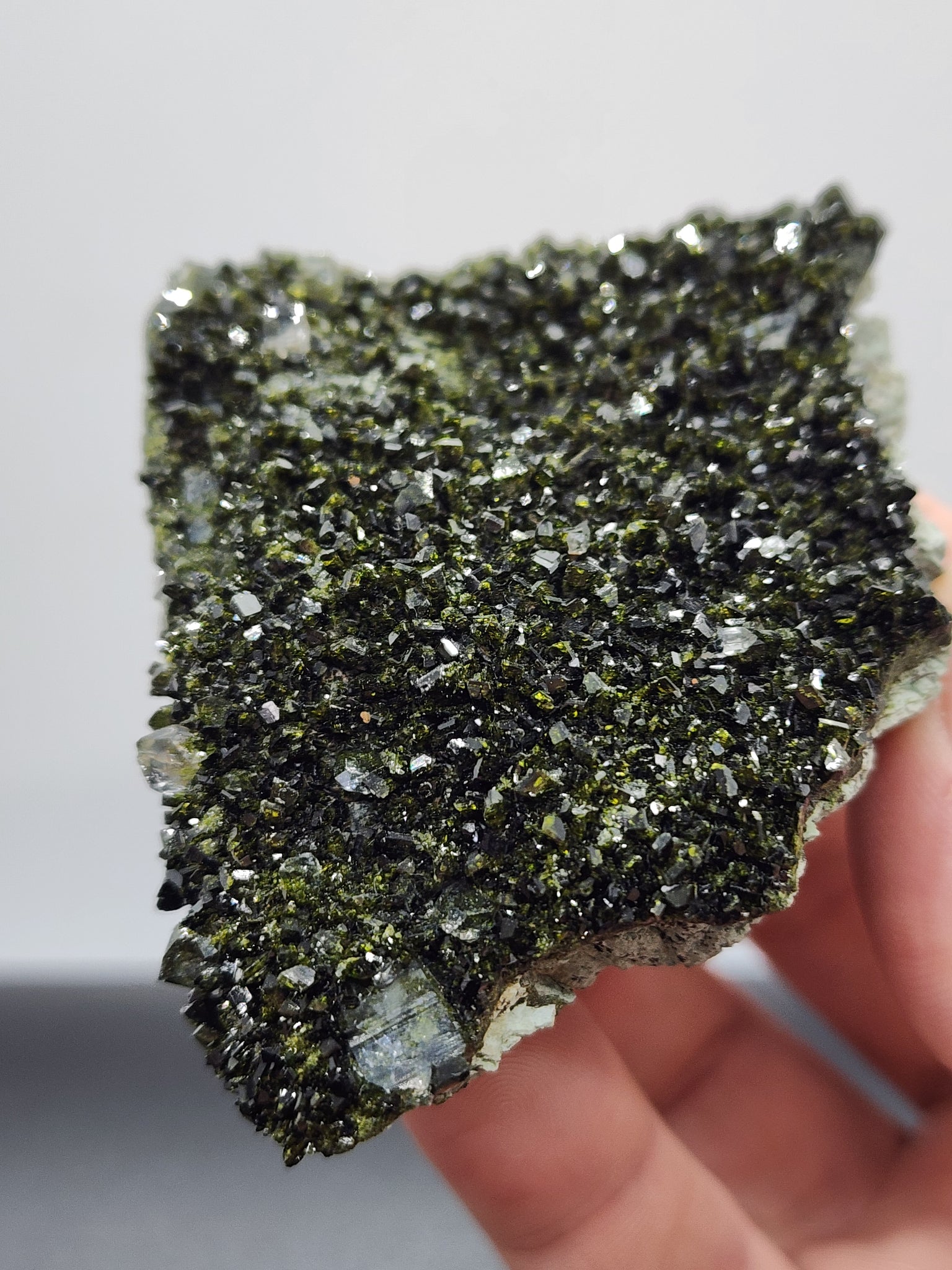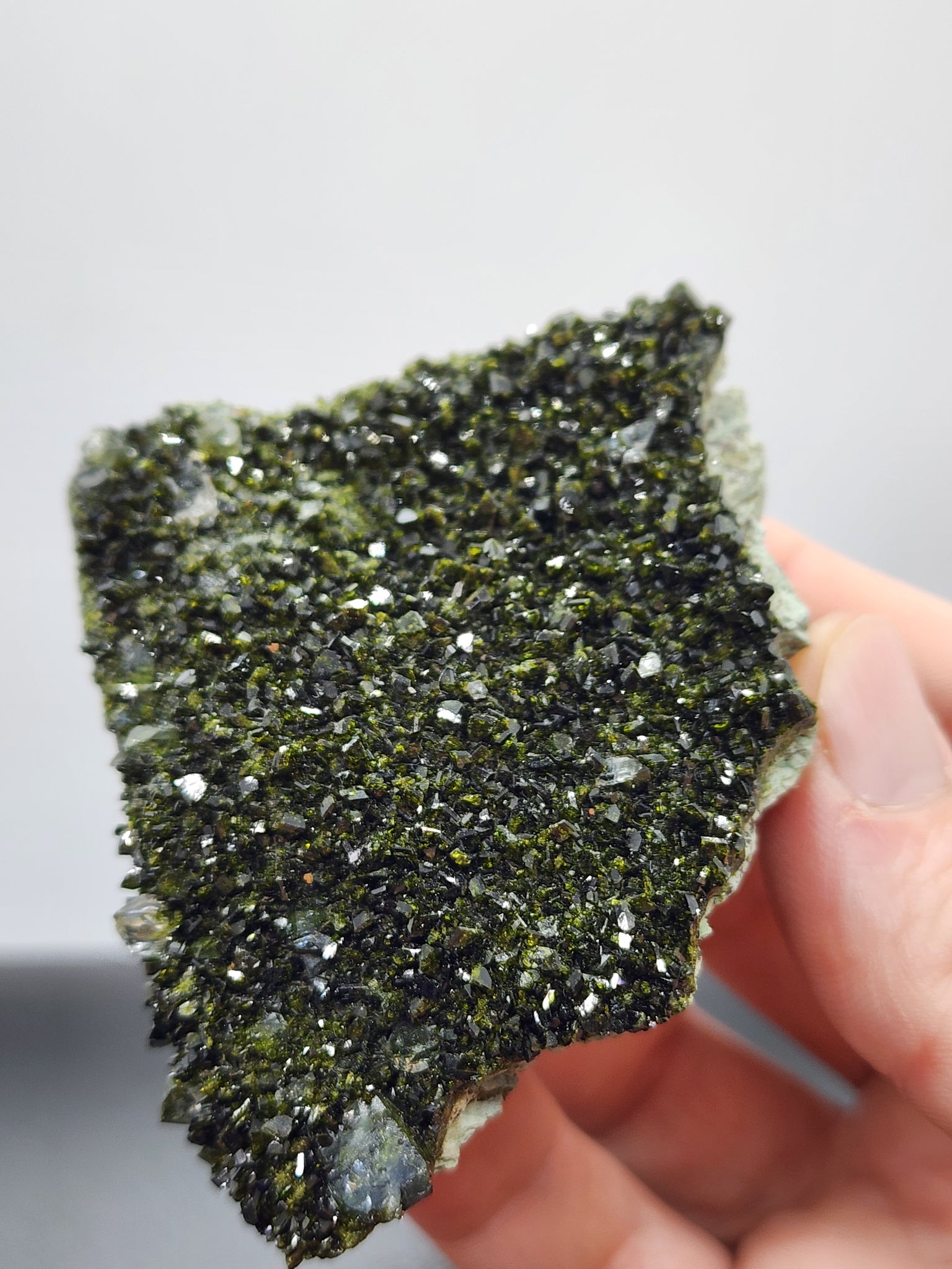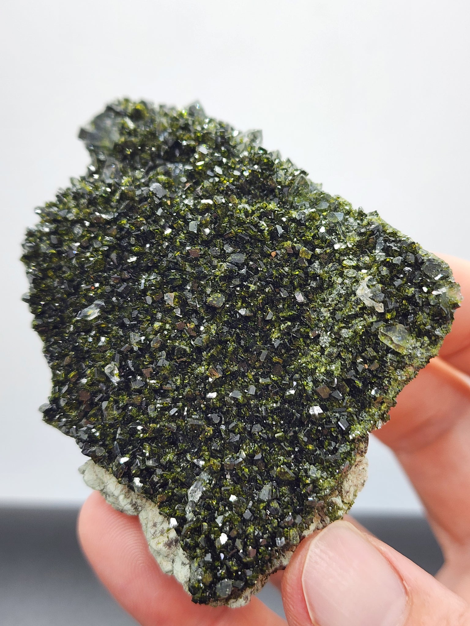 Quartz and Epidote from the Hakkari District in Turkey represent one of the world's most aesthetically stunning mineral combinations. These specimens are found specifically in the Hakkâri Province of southeastern Turkey, within the rugged and remote landscapes of the Emet Mountains near Uludoruk, as well as areas around Şemdinli and Yüksekova . The geological conditions here have produced magnificent clusters of clear to smoky, glassy quartz crystals that are often fully or partially covered by a druse of tiny, sparkling dark green epidote crystals . What makes these specimens particularly special is the intense color contrast between the transparent quartz and the vibrant, pistachio-to-forest-green epidote, which sometimes forms in such dense concentrations that it resembles green moss growing on ice . Mined by hand at extreme elevations reaching approximately 17,000 feet up the mountainsides, these crystals are prized by collectors for their exceptional luster, the unusual skeletal formations sometimes present, and the way the small, faceted epidote crystals catch and reflect light when the specimen is rotated .