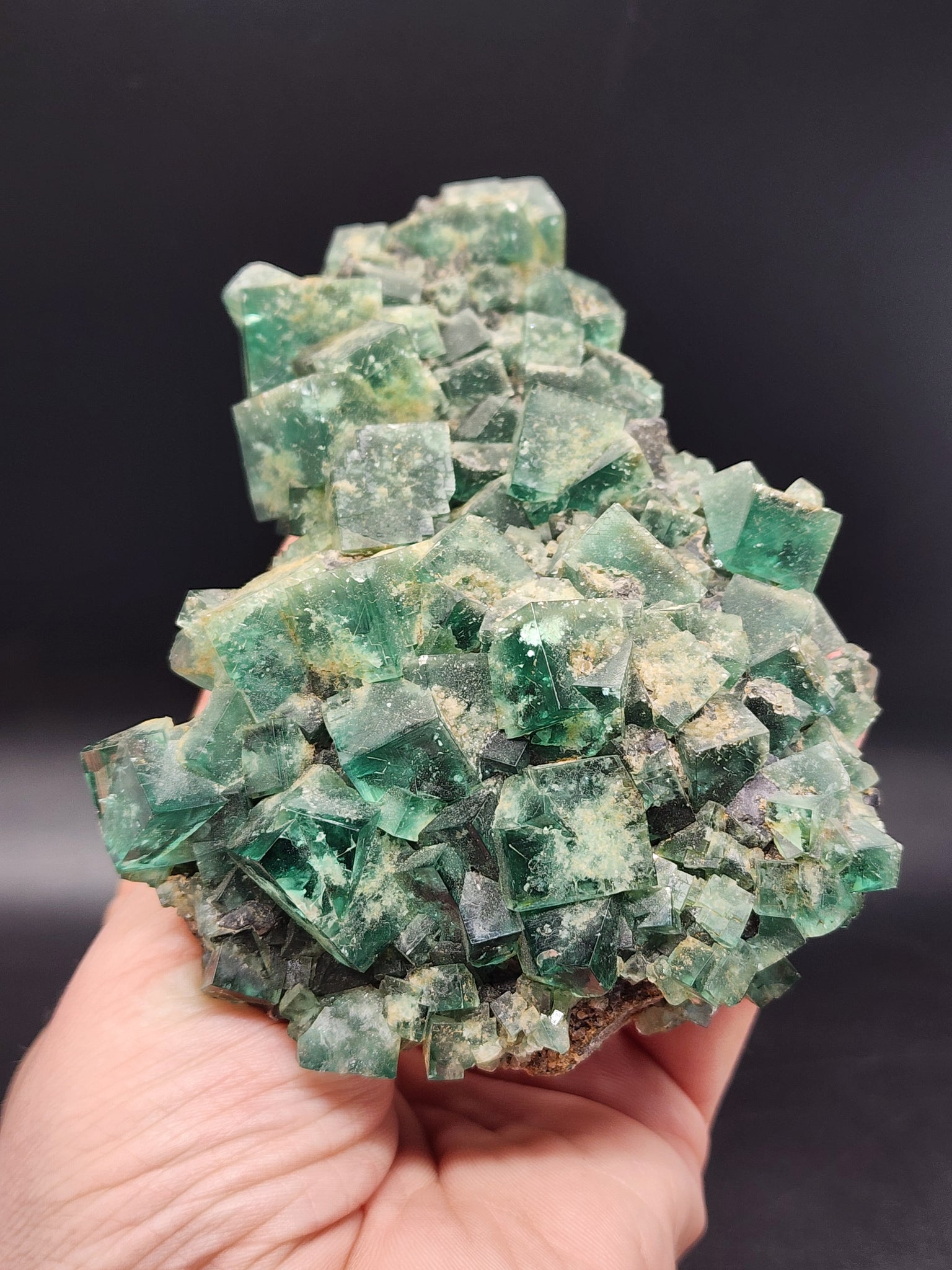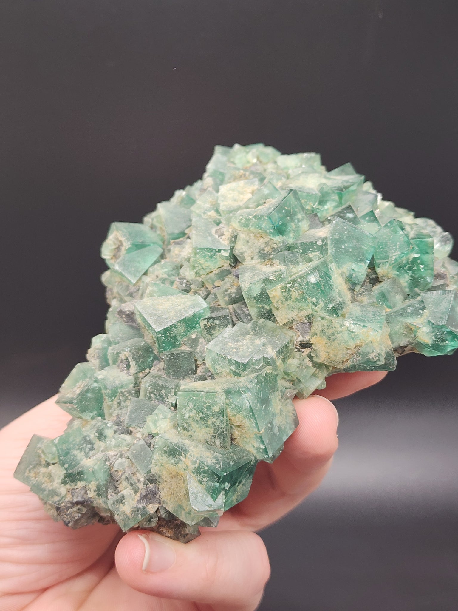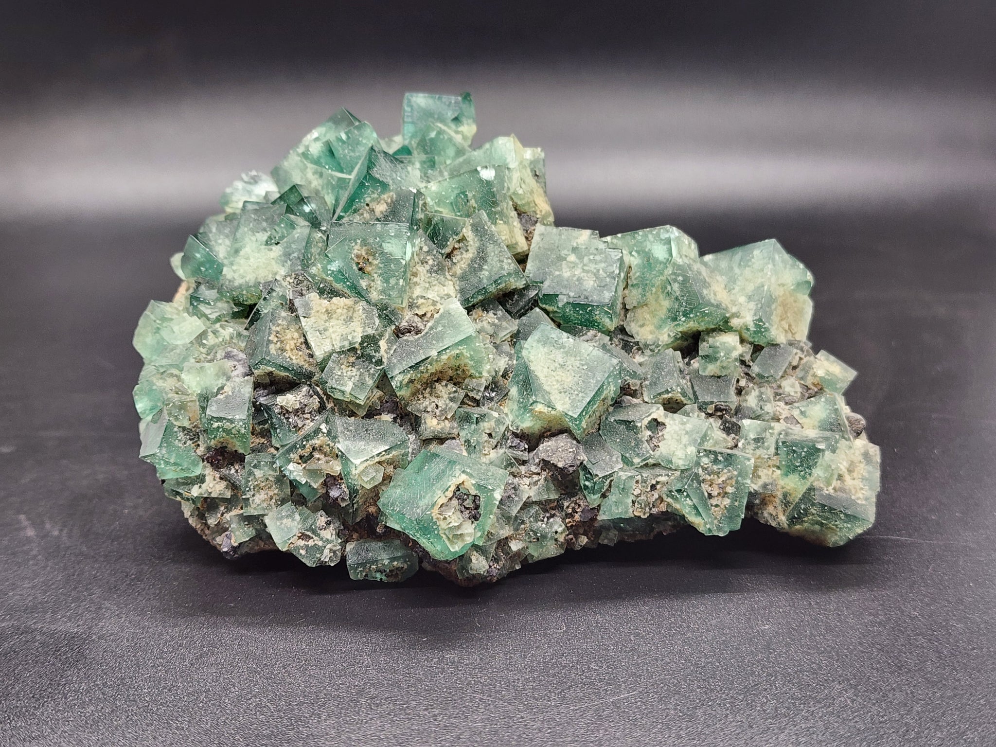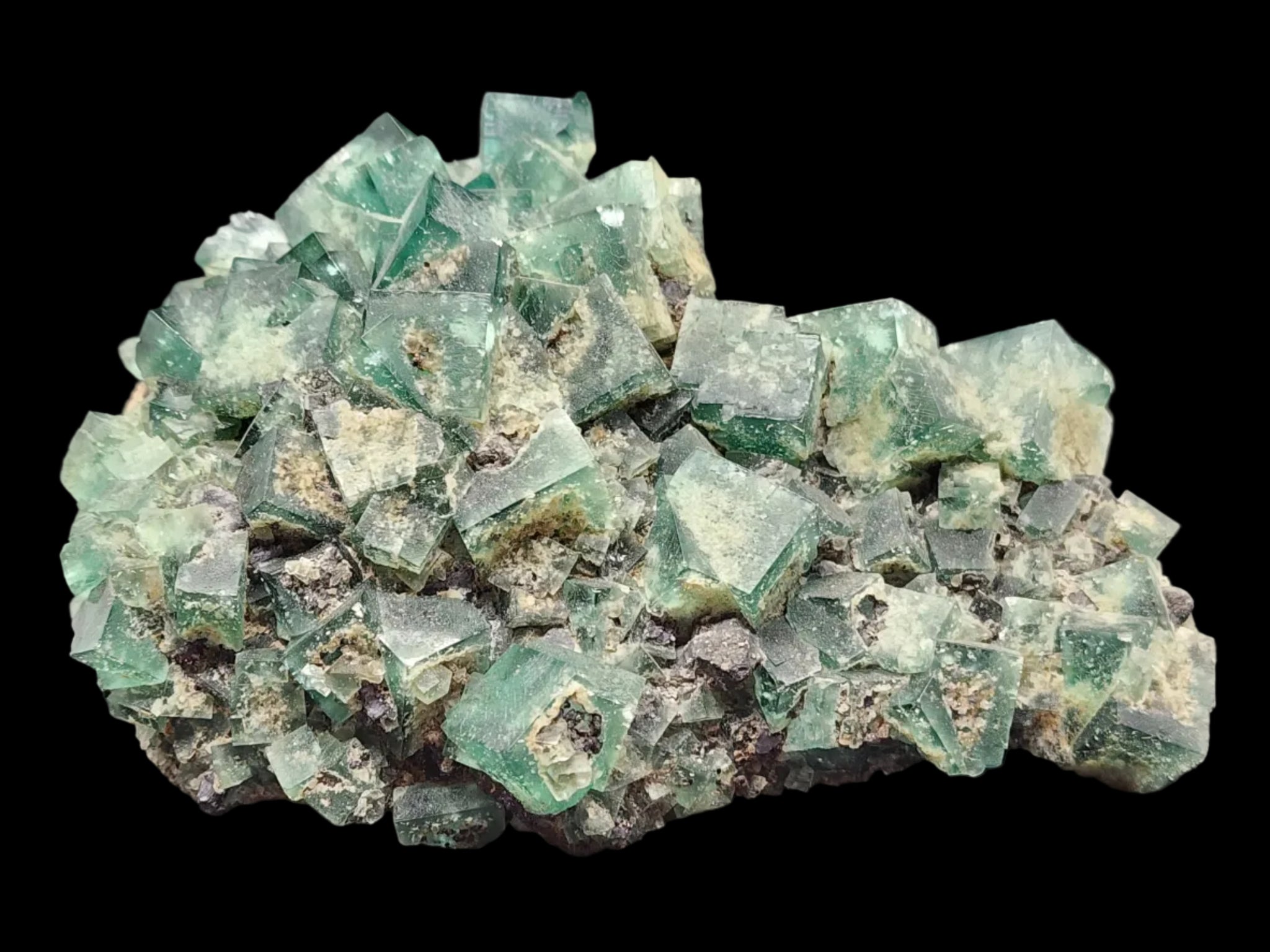 Rogerley Fluorite is a world-renowned and highly coveted mineral specimen sourced from the Rogerley Mine, located in the Rogerley Quarry near Stanhope, Weardale, County Durham, England . This mine holds the distinction of being the only mine in the United Kingdom operated commercially specifically for recovering mineral specimens . First discovered in the early 1970s by collectors Lindsay Greenbank and Mike Sutcliffe in an abandoned 19th-century limestone quarry, the mine has changed hands over the decades but continues to produce exceptional fluorite specimens prized by collectors worldwide . The fluorite from this locality is celebrated for its sharp, lustrous, often interpenetrant twinned cubic crystals that display a rich emerald-green to deep bluish-green color indoors . However, its most famous and distinctive characteristic is its remarkable daylight fluorescence, appearing to change to a purplish hue when exposed to sunlight and glowing a bright bluish-white or purple under long-wave ultraviolet light . This extraordinary optical effect is attributed to elevated levels of rare-earth elements (REEs) such as cerium, lanthanum, and yttrium within the crystal structure . Mined from specific pocket zones like the Bluebirds Pocket and the Jewel Box Pocket, these fluorites are found associated with other minerals like galena and quartz on a limestone matrix, making each specimen a unique piece of geological history from this historic English mining district .