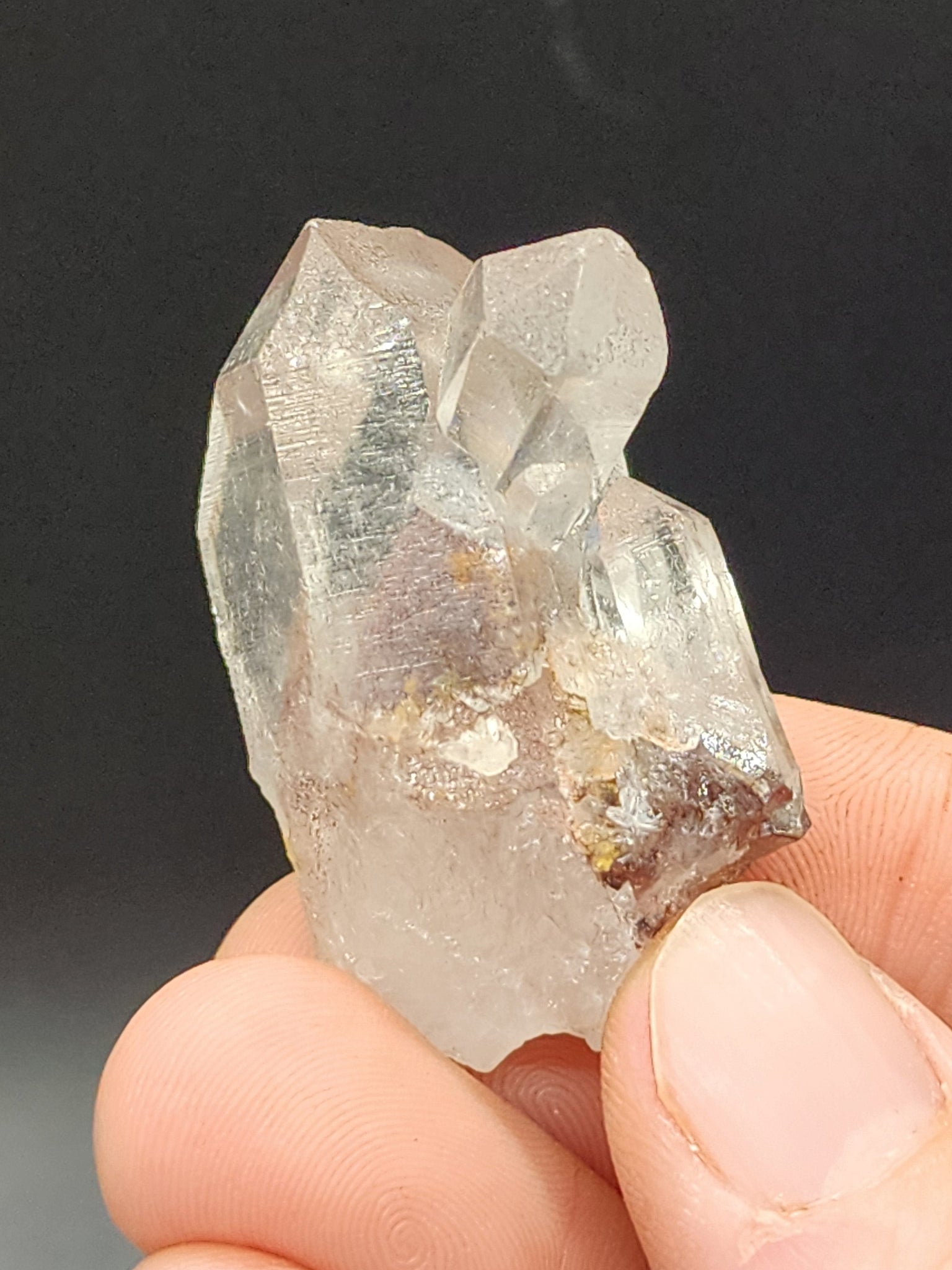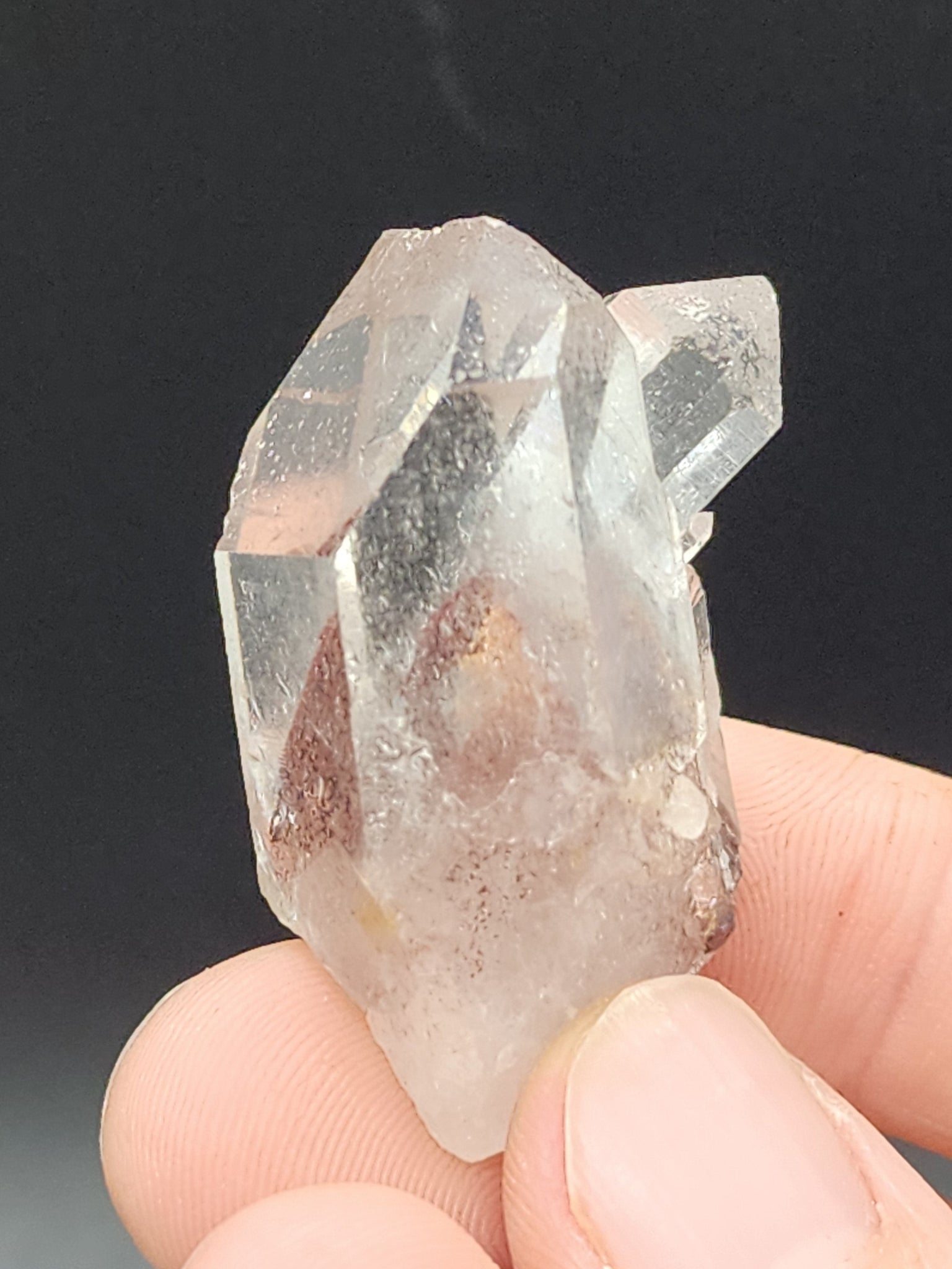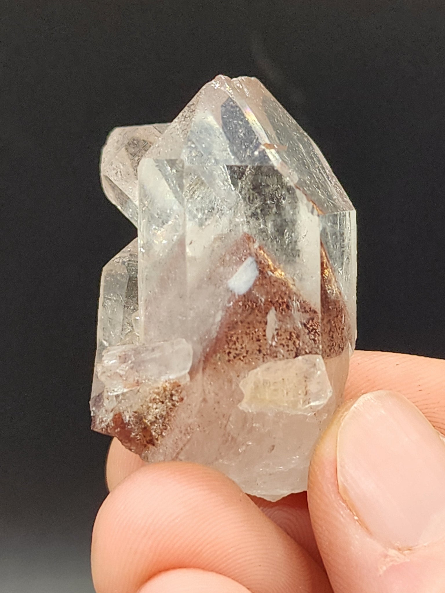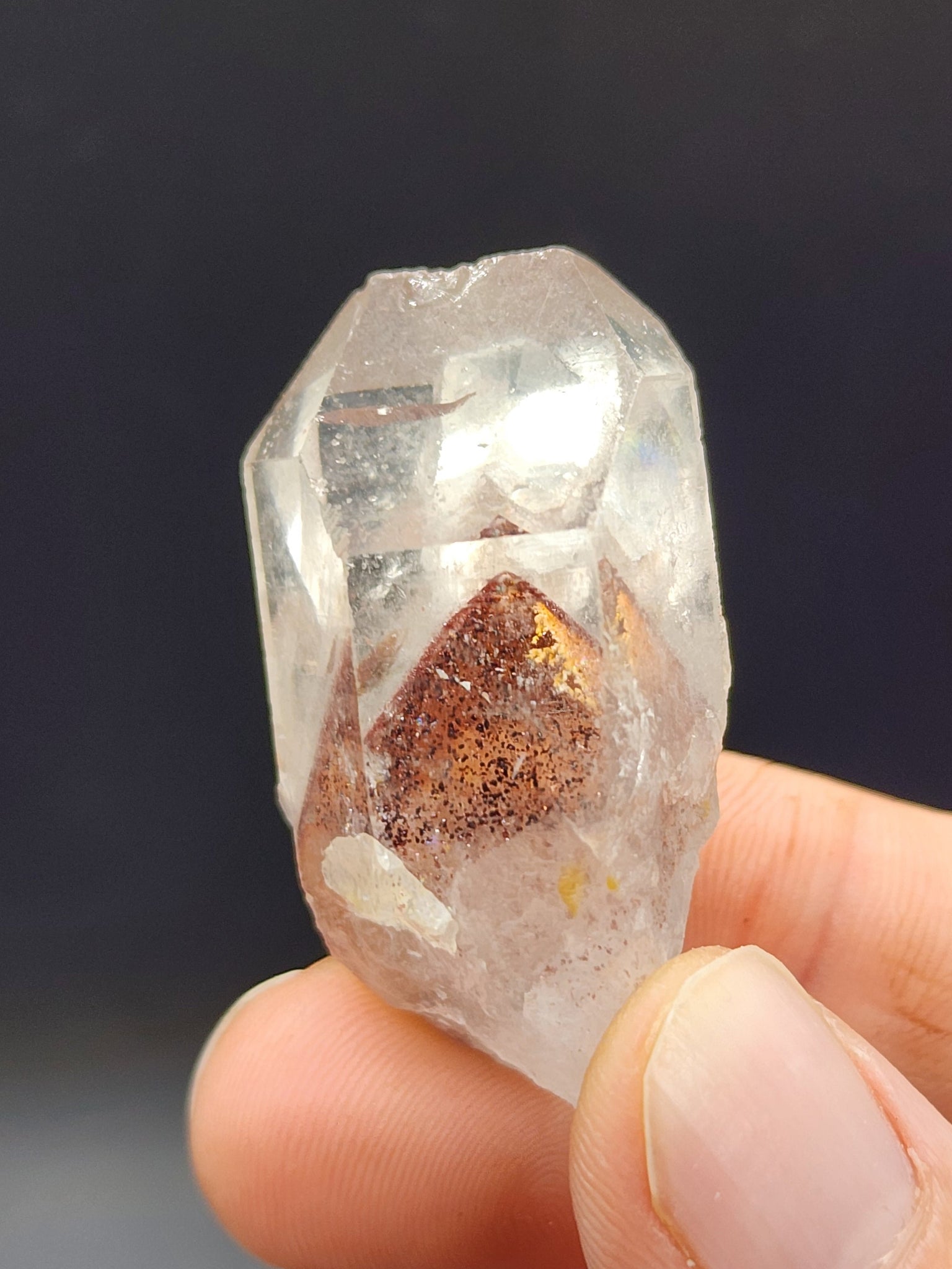 Sunset Phantom Quartz is a spectacular variety of gem-quality quartz renowned for its exceptional clarity and striking internal formations, sourced from the Andhra Parish Mines located in the Karur District of Tamil Nadu, India . These remarkable crystals, sometimes referred to as hematoid quartz, are characterized by vivid phantoms created by inclusions of hematite that range in color from deep crimson and plum to rich orange and black, often forming distinct pyramidal shapes that appear to float within the transparent quartz . The name "Sunset Phantom" poetically describes the warm, gradient hues that resemble a dusky evening sky, with the purple-red phantoms contrasting beautifully against the glassy clarity of the host crystal and the occasional orange iron oxide staining at the base . Mined by hand from deposits that gained significant attention from collectors around 2019 to 2021, these specimens are treasured not only for their aesthetic beauty but also for the geological story they tell, recording pauses and resumptions in the crystal's growth over millennia . The combination of water-clear quartz with these vibrant, well-defined hematite phantoms makes Sunset Phantom Quartz from this region highly sought after by mineral enthusiasts and metaphysical practitioners alike, who value the grounding properties associated with hematite and the amplifying qualities of quartz working in harmony .